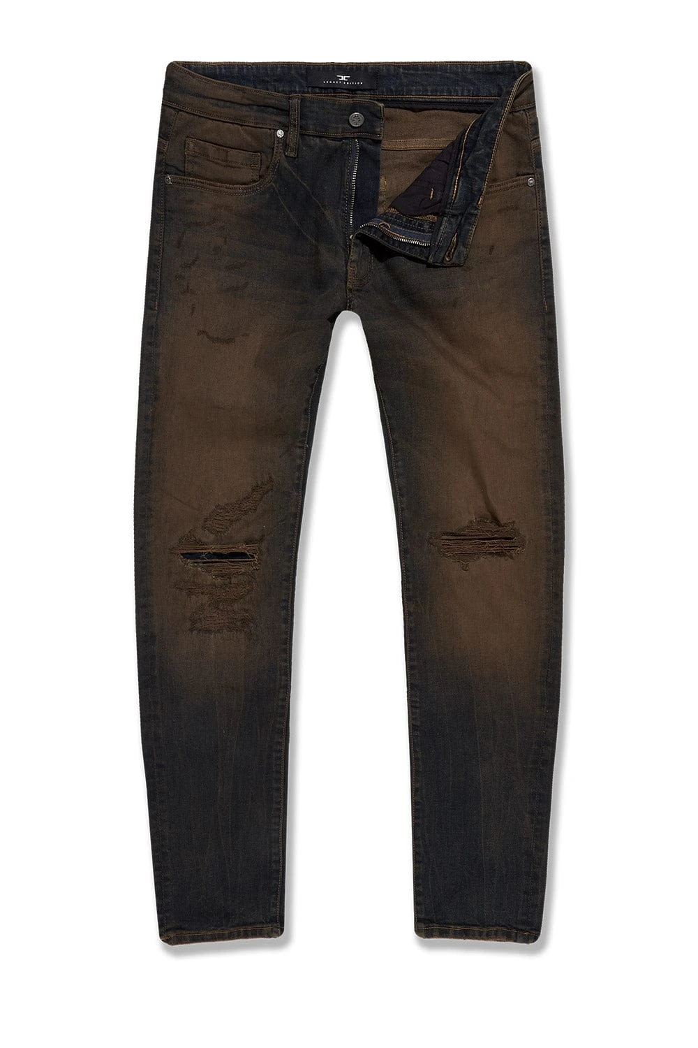 *Cozy is 6’1″ and weighs 170 lbs. He is wearing our Collins – Dune Denim (32×32) in Dark Vintage