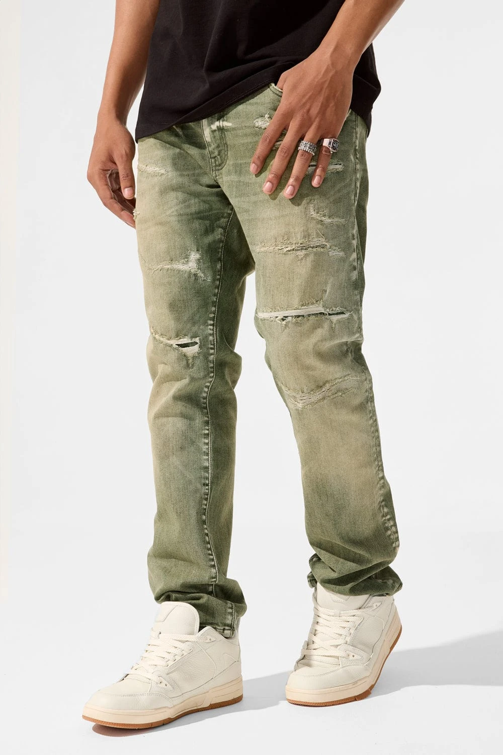 - Unique distressing details on each pair