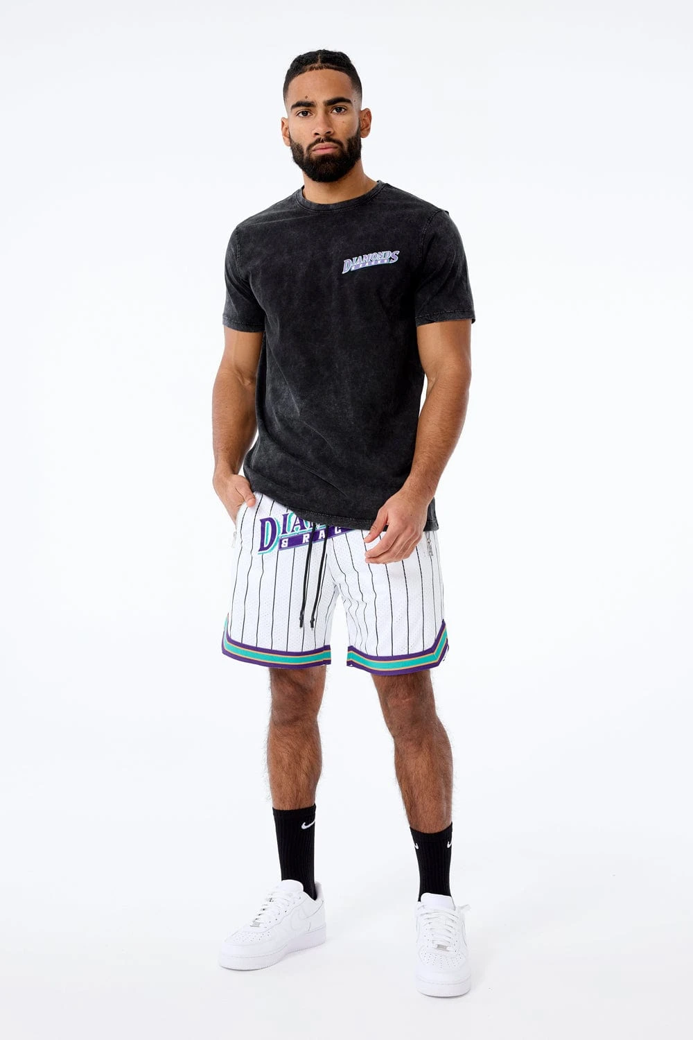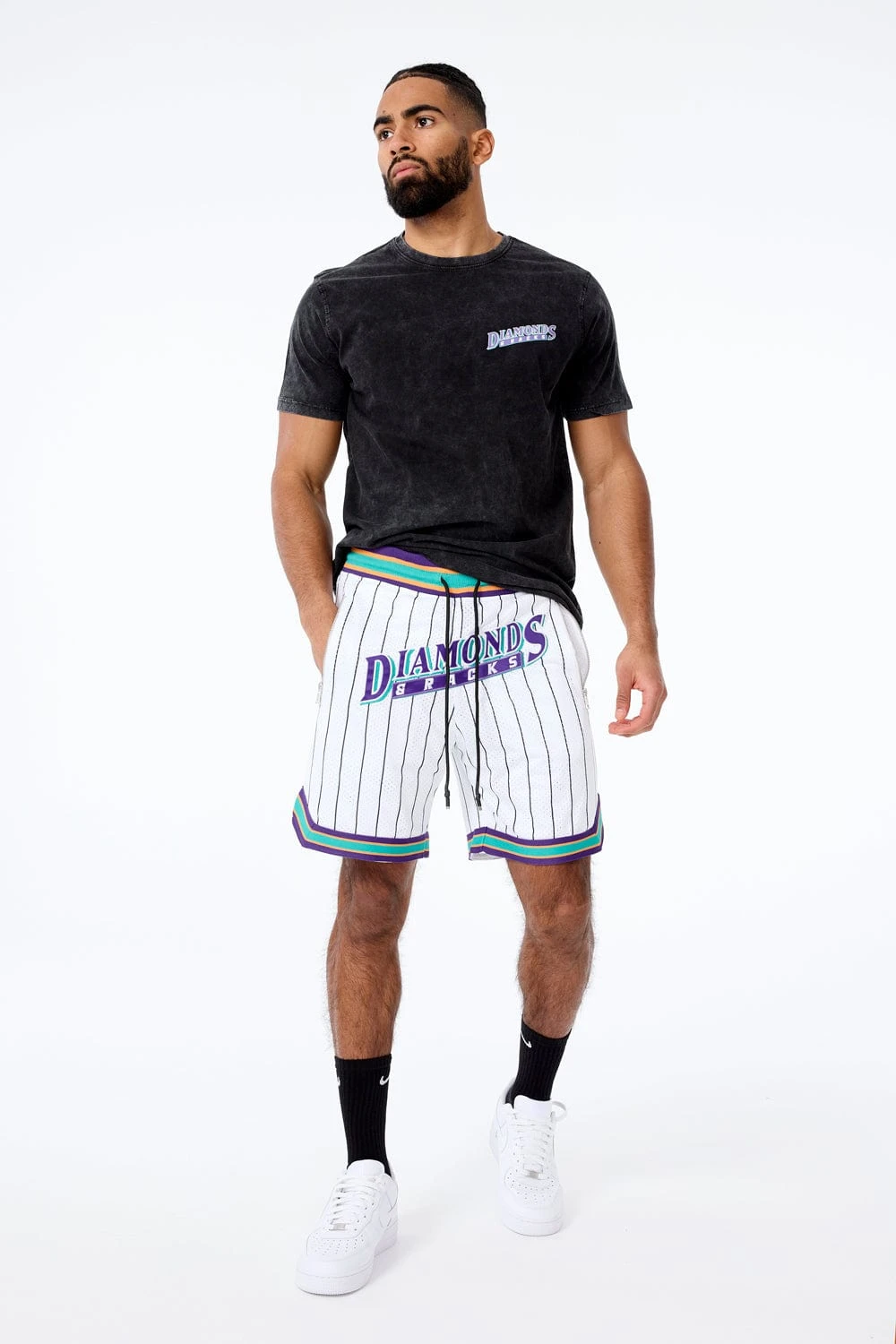 - Matches our Retro – Diamonds & Racks Basketball Shorts (White Diamond)