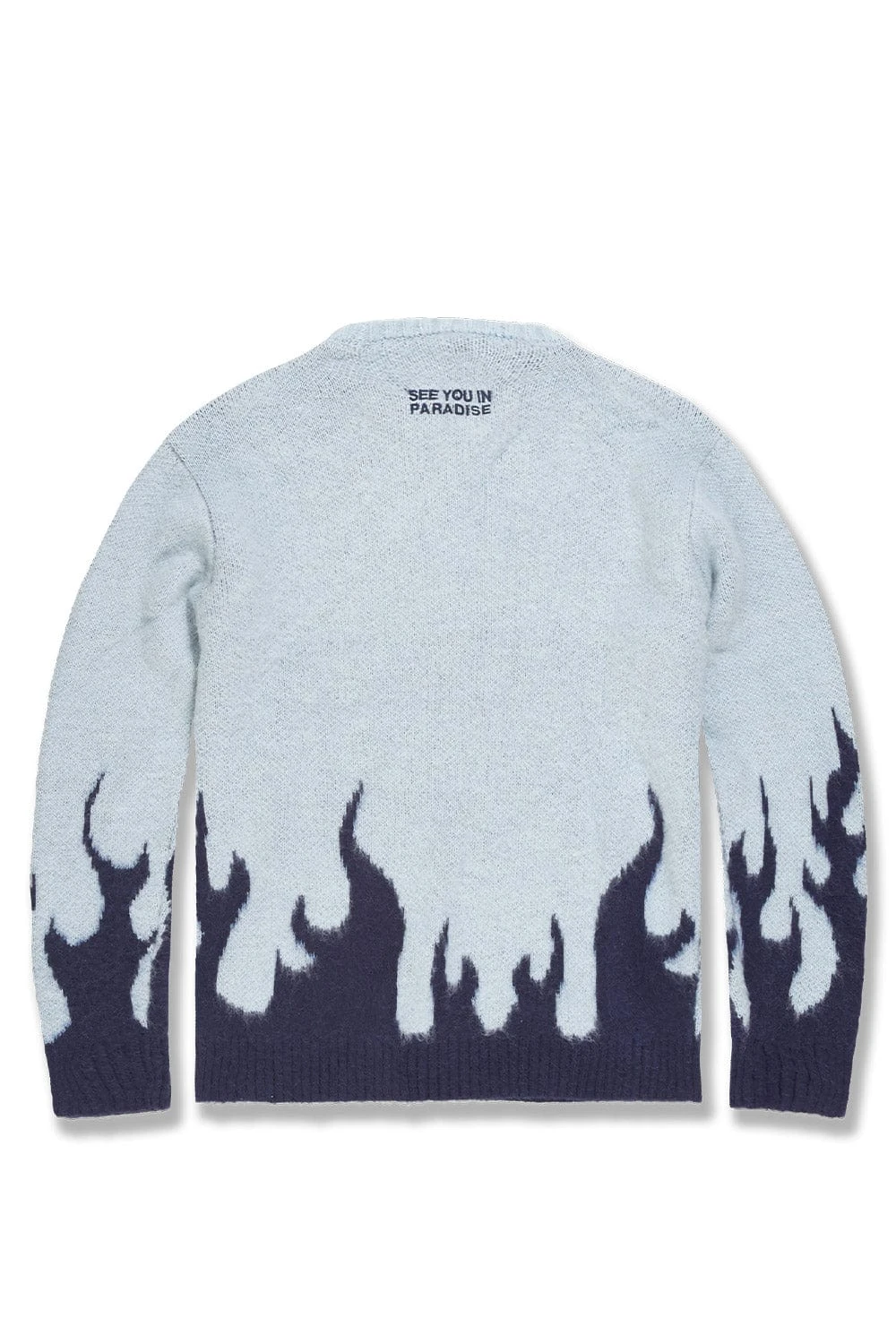 *Cozy is 6’1″ and weighs 170 lbs. He is wearing our Inferno Crewneck Sweater (Size Large) in Azure