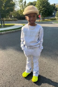 Lathan is wearing our Kids Paradise Tonal Crewneck (Bone) in size 2T. Lathan is 2 years old.