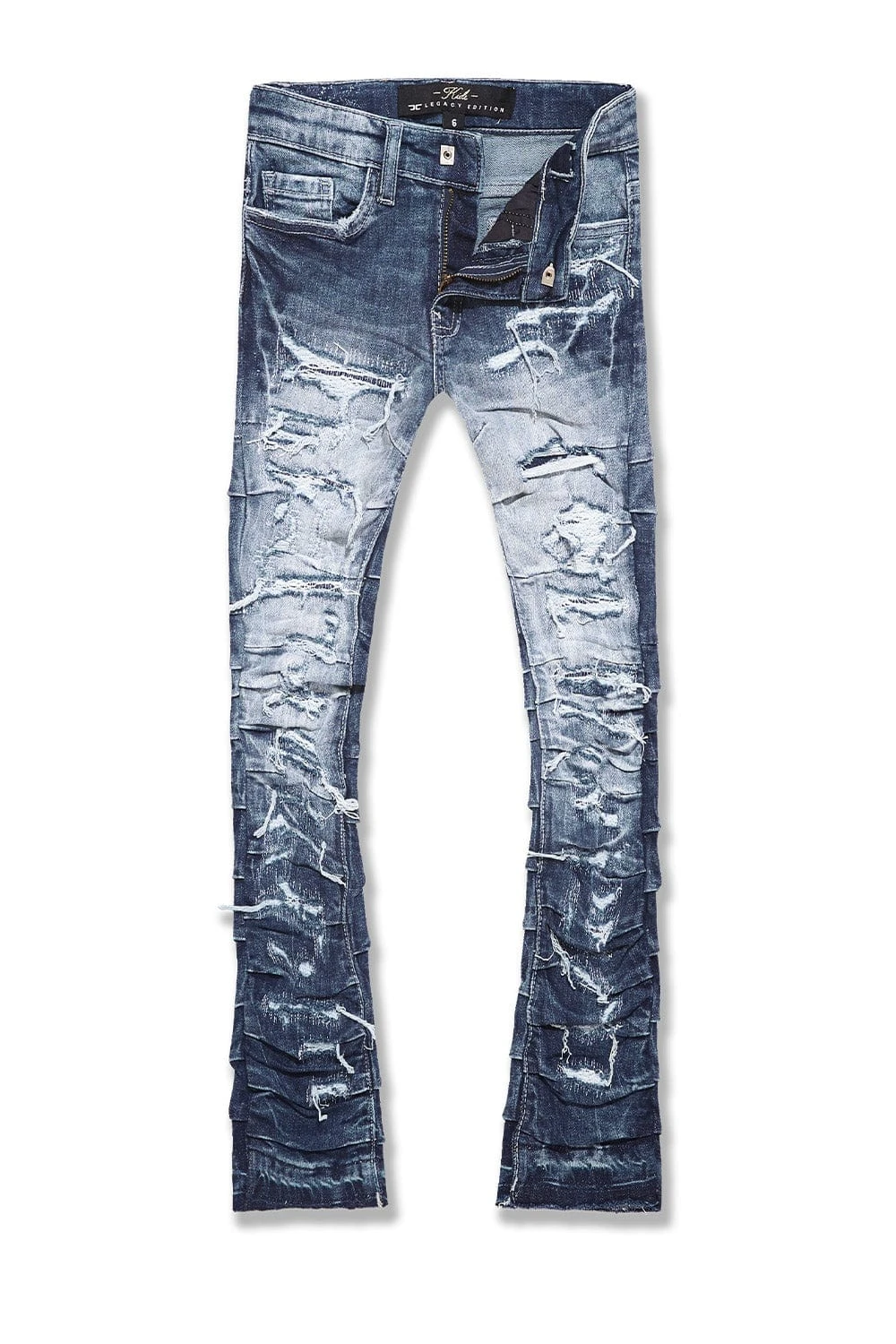 - Extended length flare pant for maximum stacks