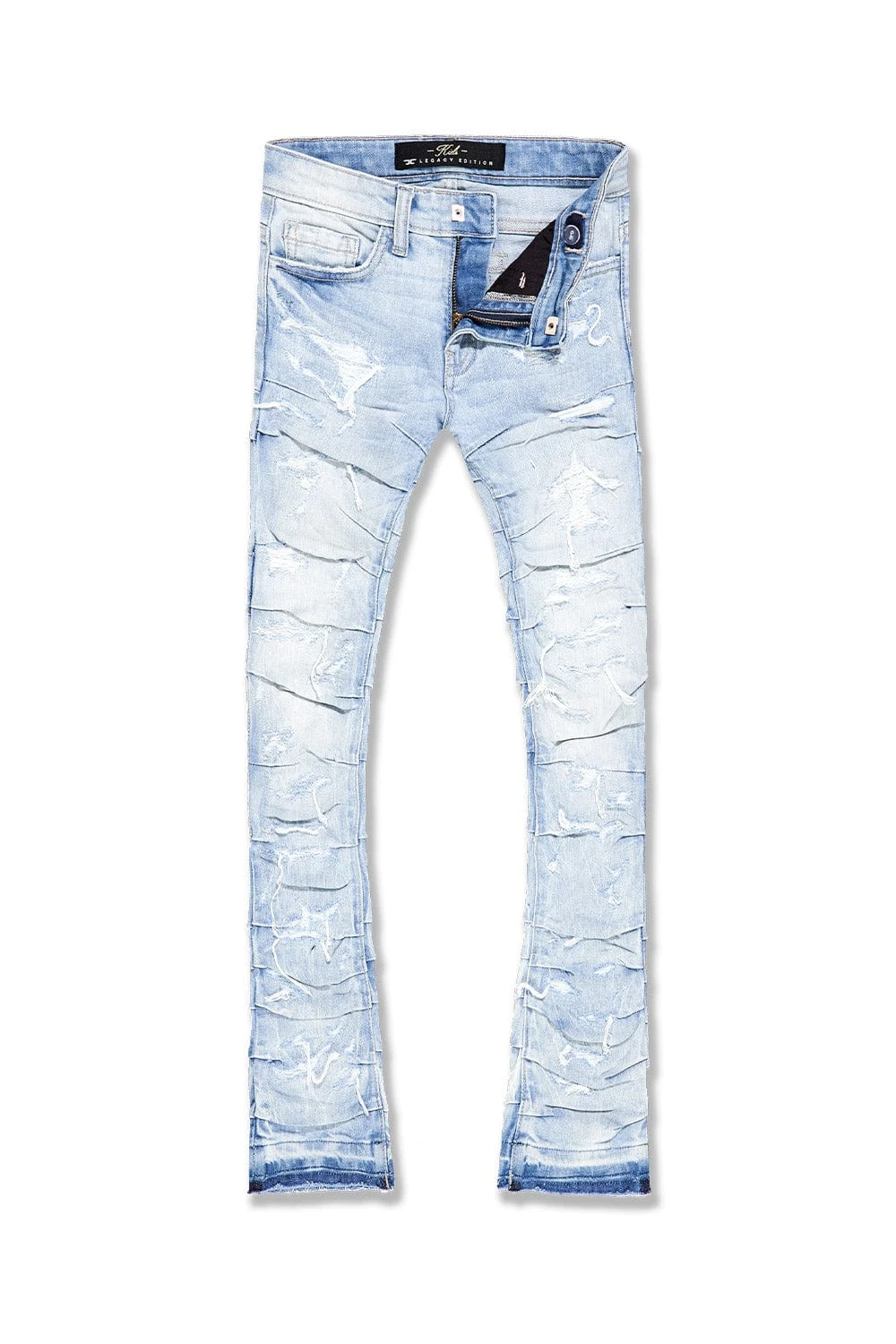 - Extended length flare pant for maximum stacks