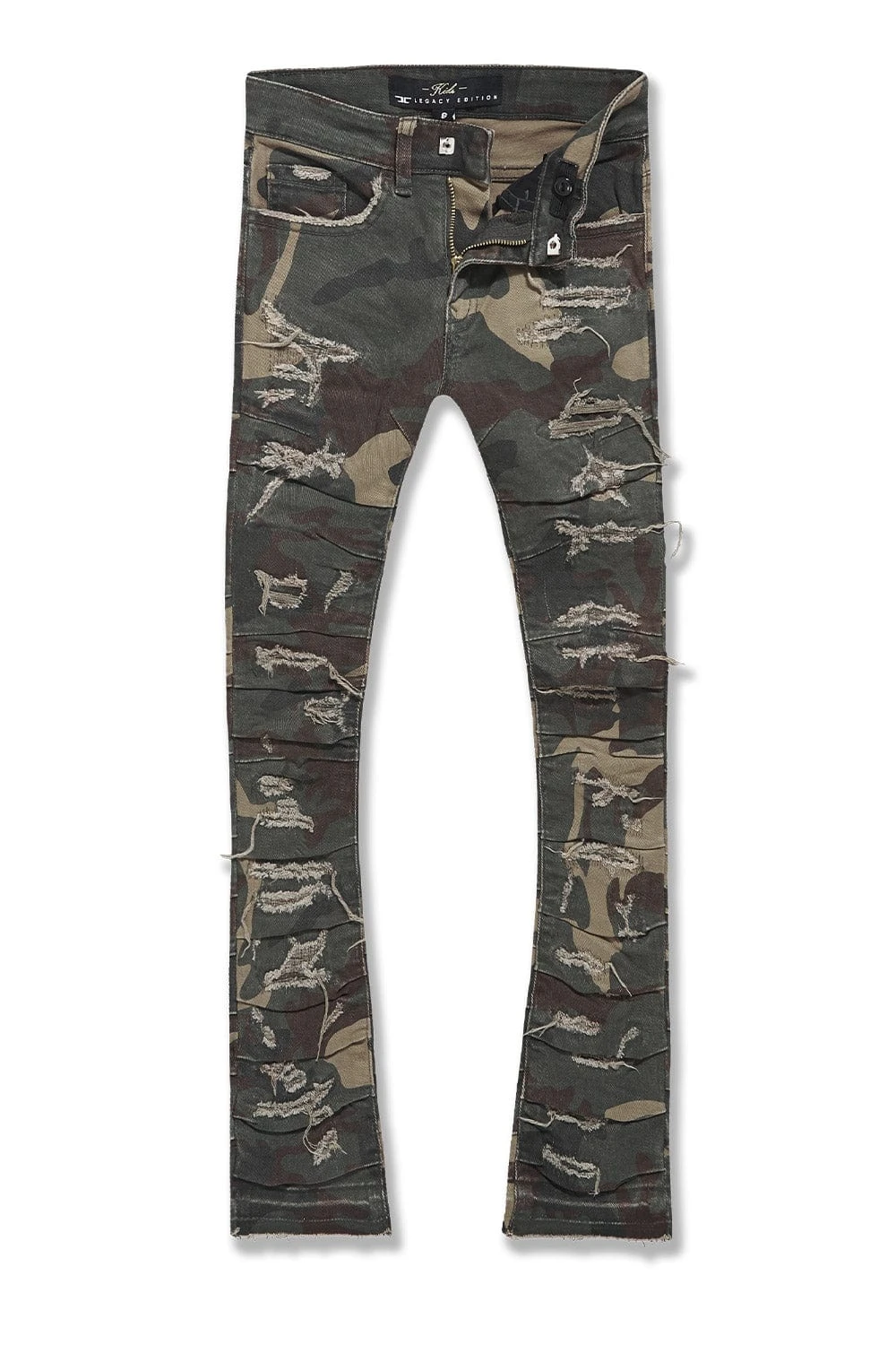- Extended length flare pant for maximum stacks