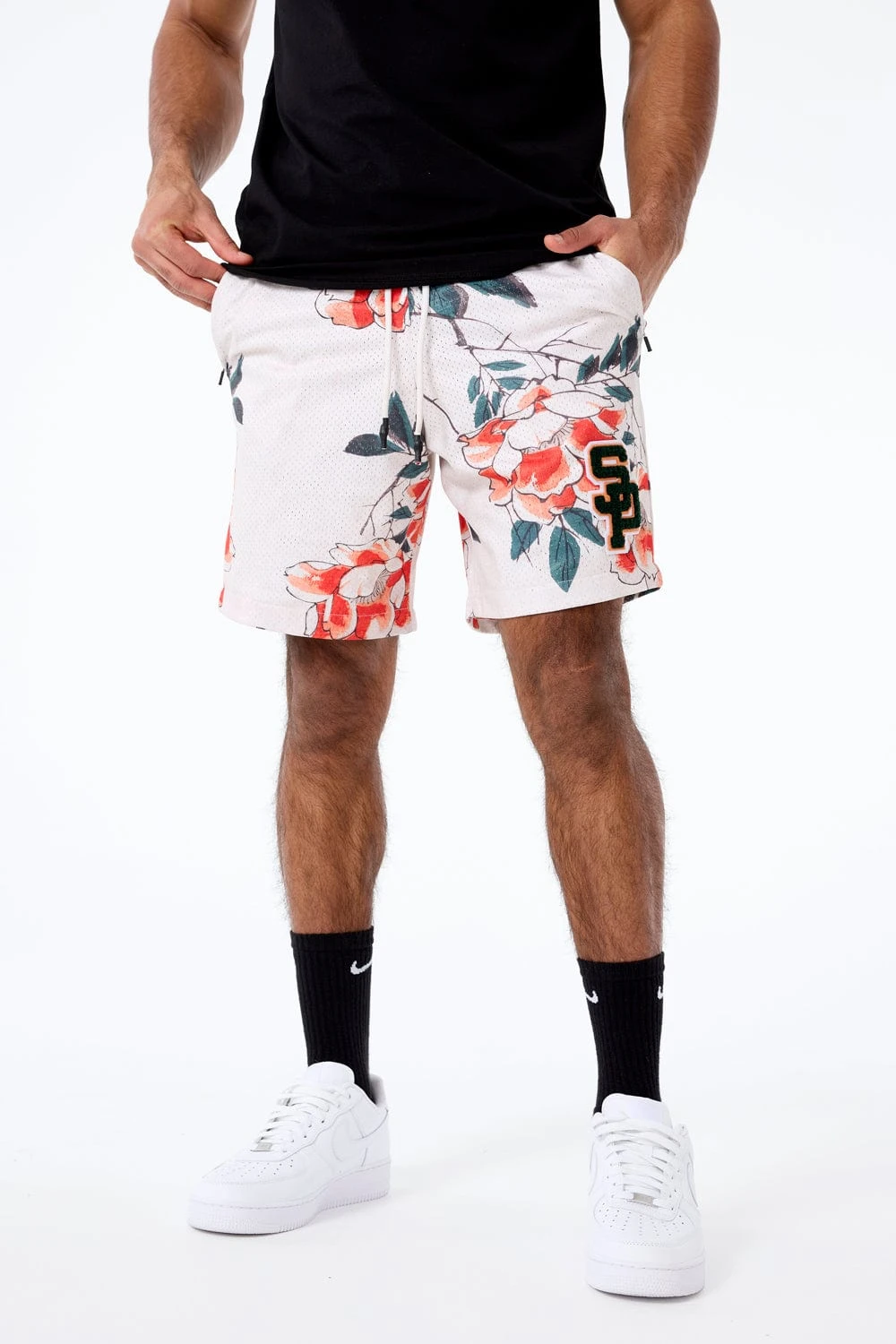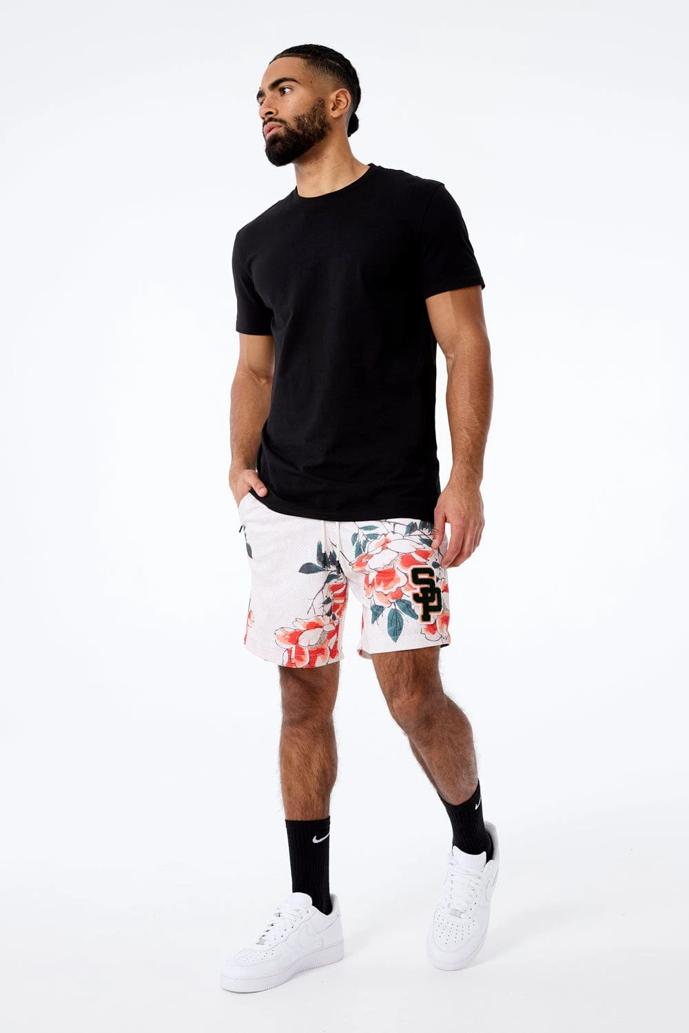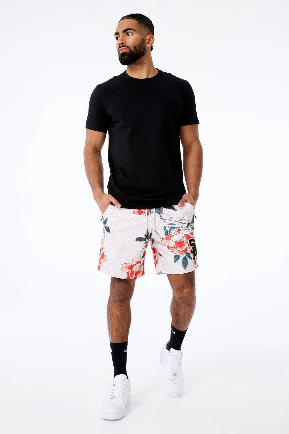 * Shomari is 6’1″ and weighs 175 lbs. He is wearing our Retro – Cherry Blossom Mesh Shorts (Size Medium) in Stone.