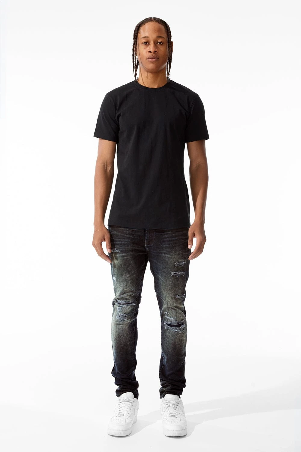 *Cozy is 6’1″ and weighs 170 lbs. He is wearing our Sean – McCarter Denim (32″ x 32″) in Midnight DesertÂ